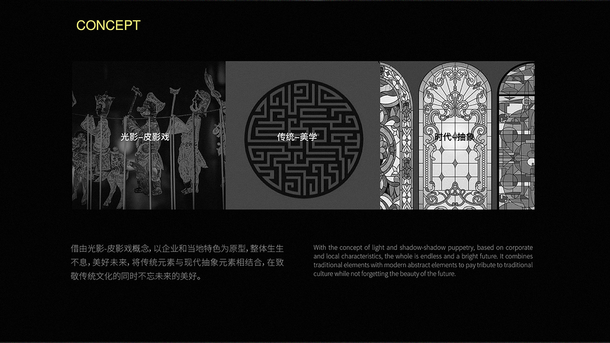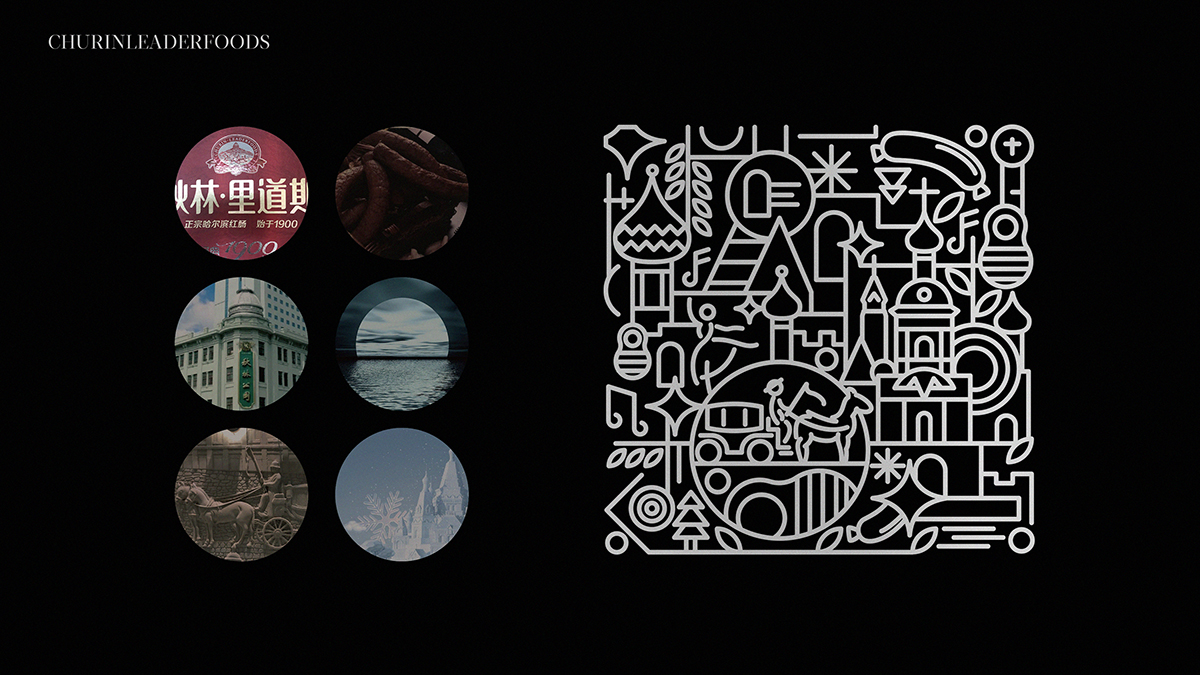 整體設計借由皮影戲的光影概念,將巴洛克風格與傳統美學做結合,提取哈爾濱地域文化特色和秋林里道斯的代表元素,雕刻出一幅精美的畫面。將禮盒的八枚月餅取出,可拼成一幅表現中秋月亮盈虧的畫面,增強了禮盒的互動性。
